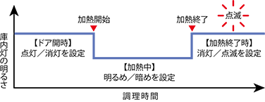 ドアを開けた時・加熱中・加熱終了時の庫内灯の状態を変更できます。