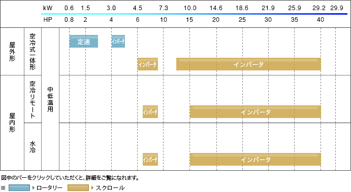 - 屋内形 スクロールインバーター冷凍機 空冷式 中低温用
