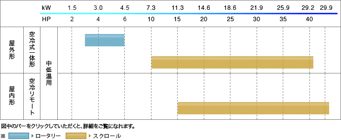 蒸発温度範囲:-45℃~+10℃ 冷媒:R410A